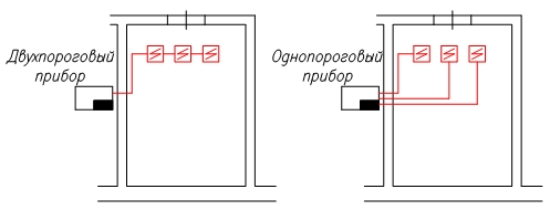 Однопороговый прибор – это прибор, который выдает сигнал «Пожар» при срабатывании одного пожарного извещателя в шлейфе. Двухпороговый прибор – это прибор, который при сработке одного извещателя в шлейфе выдает сигнал «Внимание!», не запуская систему оповещения по всему объекту, а при сработке второго извещателя в этом же шлейфе выдает сигнал «Пожар» и автоматически запускает систему оповещения и др. системы. Теперь разберем подробно каждый пункт.